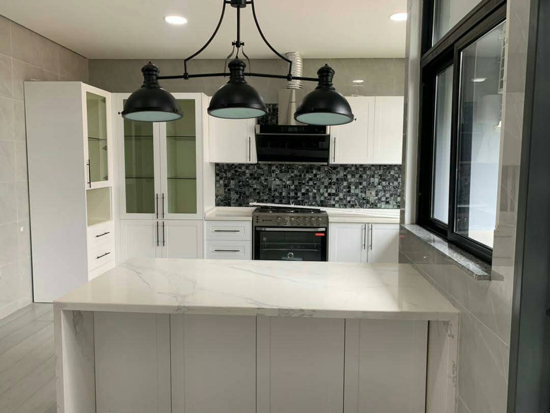 3 Chambres avec douches et placards..1 séjour…une salle à manger..1 cuisine ultra moderne..1 magasins..terrasses… garage..1 générateur..video surveillance..vigiles 24h/ 24h